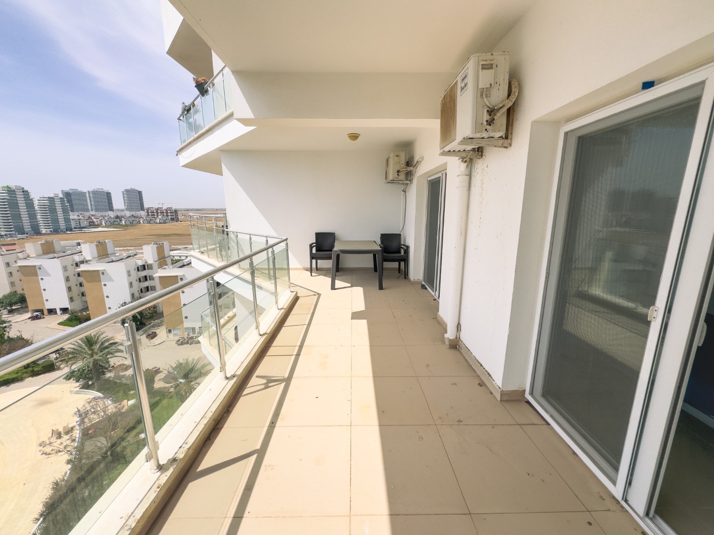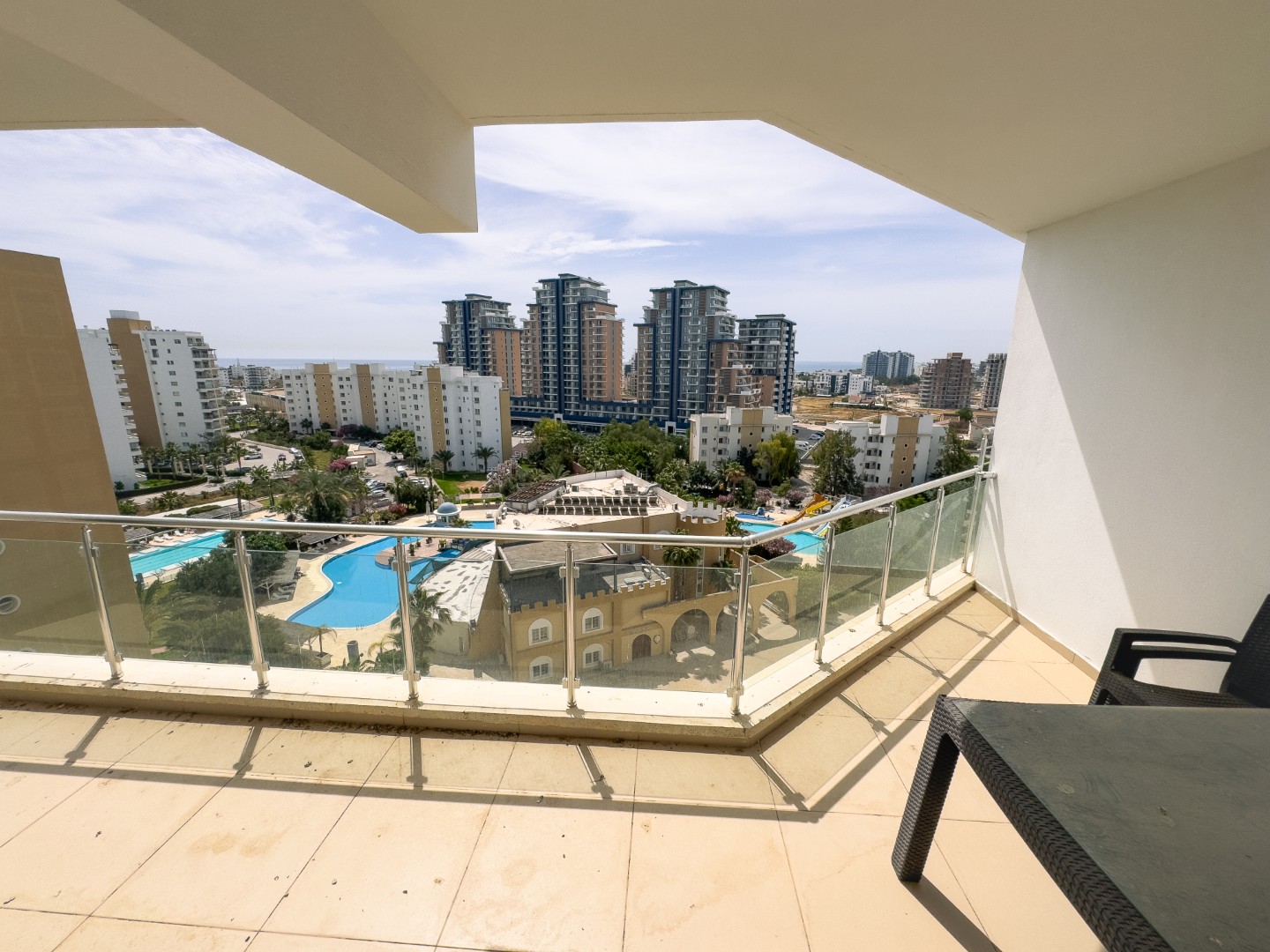 - Spacious balcony with a pool view